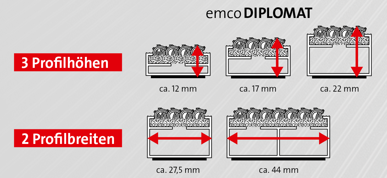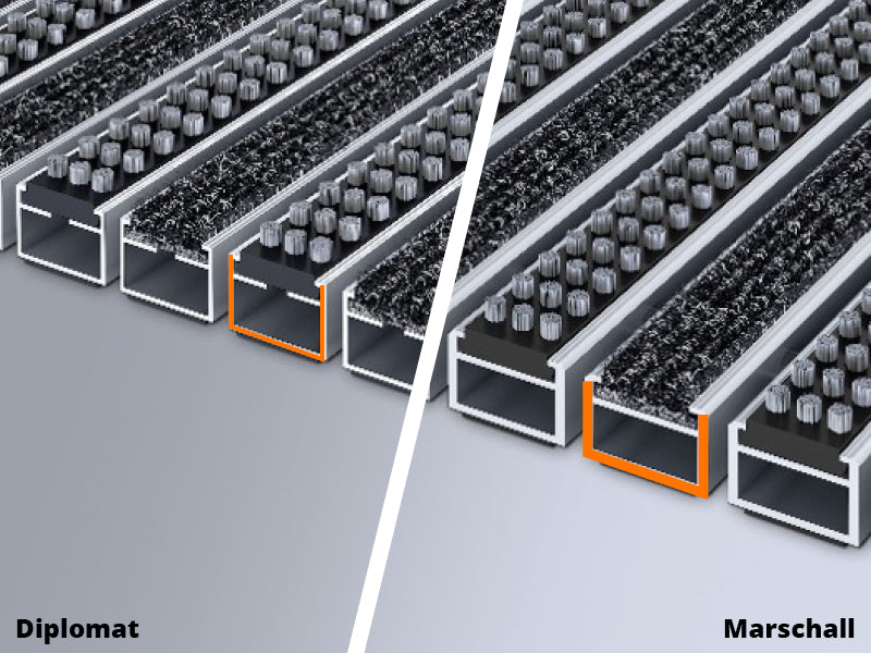 Ob für den privaten Gebrauch oder stark frequentierte Eingänge – wählen Sie zwischen DIPLOMAT (für Zuhause und Büros) und MARSCHALL (für öffentliche und gewerbliche Bereiche mit hoher Belastung).