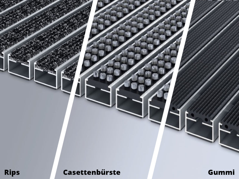 Sie können Rips-, Gummi- und Bürsteneinlagen individuell kombinieren, um die optimale Reinigung für Ihren Eingangsbereich zu gewährleisten.
